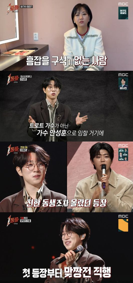8일 방송된 MBC 예능 ‘1등들’ 4회에서는 ‘미스터트롯2’ 우승자 안성훈이 새 가수로 등장했다.