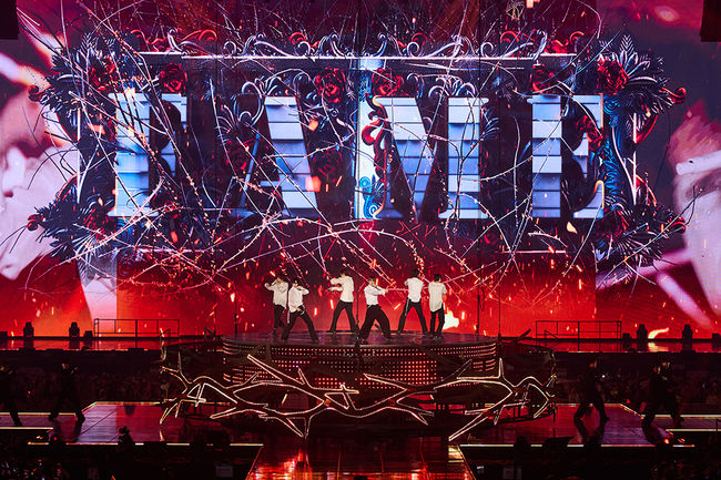 더불어 투어 시작점에 다시 선 멤버들이 펼친 ‘Bag Bad Back’(백 배드 백), ‘Siren’(사이렌), ‘잉걸’ 등 패기 넘치는 강렬한 오프닝 섹션부터 샤막 프로젝션으로 물 속에 잠긴 듯 차분함이 느껴진 ‘Something’s in the Water’(썸띵스 인 더 워터), 움직이는 가시 왕관 세트와 턴테이블 리프트로 웅장함을 불어넣은 ‘Fame’(페임), 천장을 수놓은 은하수 레이저가 돋보인 ‘Combo’(콤보) 등 눈을 뗄 수 없는 화려한 무대로 관객들의 환호를 이끌어냈다.