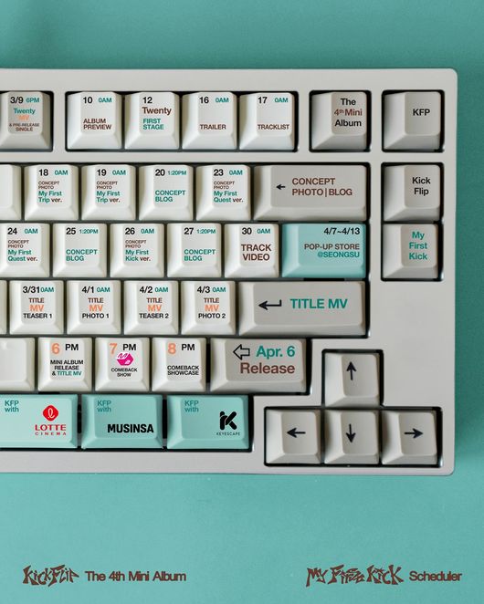 킥플립은 오는 4월 6일 새 미니 앨범 'My First Kick'(마이 퍼스트 킥)을 정식 발매한다. 이에 앞서 3월 10일 0시 그룹 공식 SNS 채널에 미니 4집 프로모션 일정이 담긴 스케줄러 영상과 이미지를 게재해 팬들의 이목을 집중시켰다.