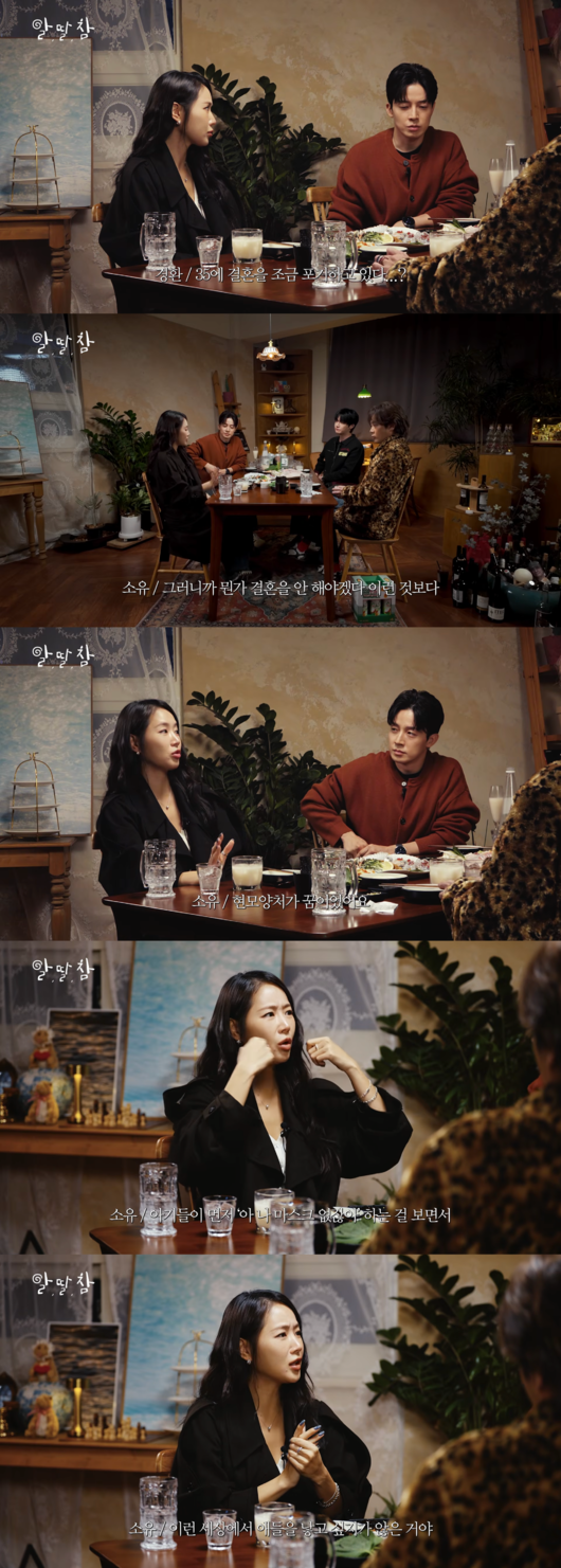 특히 소유는 코로나를 겪으며 생각이 달라졌다고. 그는 “코로나 때 아이들이 ‘마스크 없잖아’라고 말하는 걸 보고 이런 세상에 아이를 낳고싶다는 생각이 들지 않았다. 아이를 낳을 생각이 없으면 굳이 결혼할 이유가 있나 싶었다. 그래서 자연스럽게 결혼 생각도 없어졌다”고 설명했다.