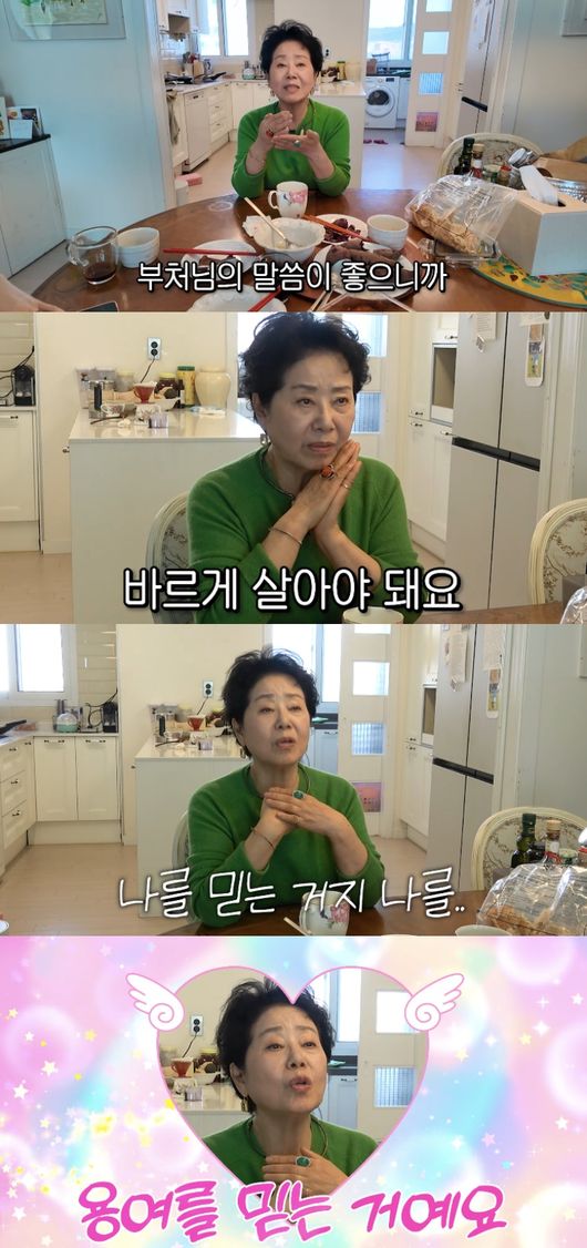그러면서 선우용여는 “나는 신을 믿는 게 아니다. 나를 믿는 거다. 용여을 믿는 거다”라고 강조했다.