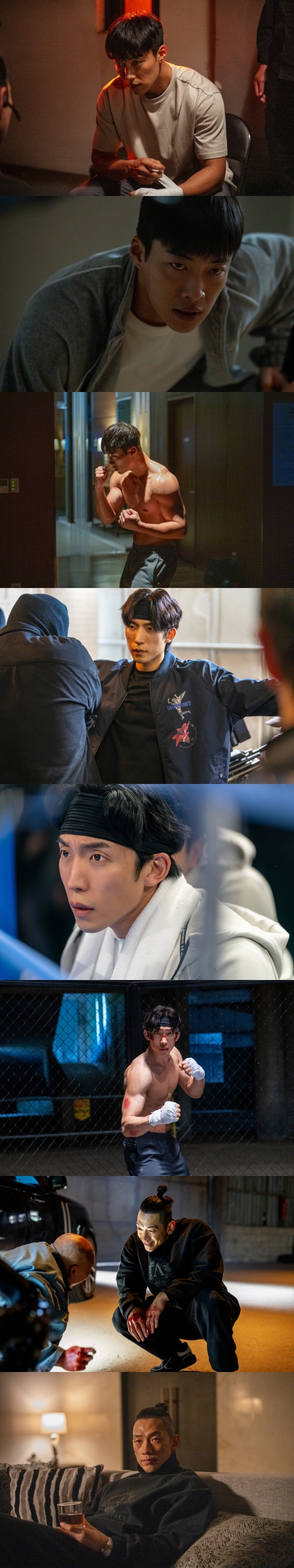 건우, 우진과 대립각을 세우며 폭발적인 긴장감을 불어넣을 백정(정지훈)의 존재감 역시 남다르다. 오직 돈만을 목적으로 움직이는 그는 막대한 시청자 수와 거대한 베팅으로 굴러가는 글로벌 불법 복싱 리그를 운영하는 인물. 시선을 압도하는 강력한 비주얼과 상황을 즐기는 듯한 비릿한 미소는 무자비한 공격력을 가진 악인의 면모를 짐작게 한다.