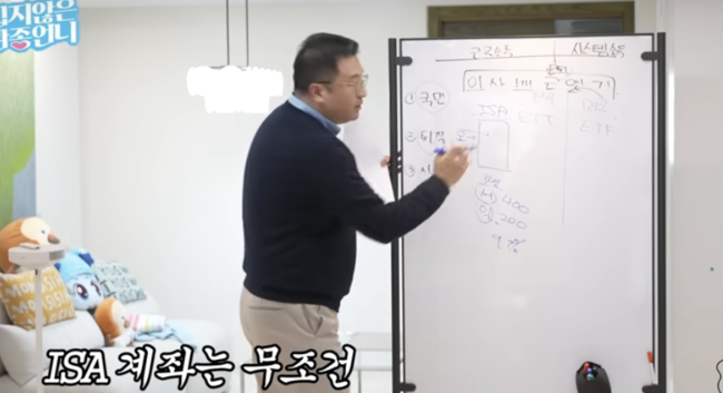 그러면서 “국가는 국민연금, 퇴직연금(IRP), 개인연금(연금저축)으로 구성된 3층 연금 구조를 만들고 있다”며 “절세 계좌를 잘 활용하면 세금을 줄이면서 장기 투자 전략을 세울 수 있다”고 조언했다. 문재완은 은퇴 준비의 중요성도 강조했다. 그는 “은퇴 준비를 혼자 고민할 필요는 없다. 이미 국가에서 만들어 놓은 제도가 있다”며 “열심히 돈을 모아 먼저 ISA 계좌로 투자해보는 것도 좋은 전략”이라고 설명했다.