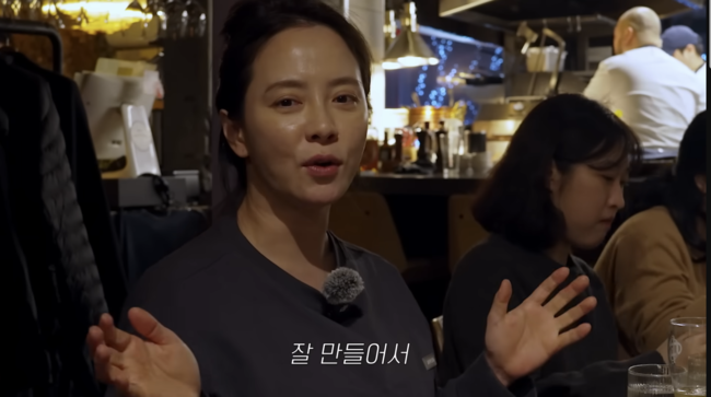 이날 송지효는 넷플릭스 예능 ‘흑백요리사’에 출연해 ‘고기깡패’라는 별명으로 화제를 모은 셰프 데이비드 리의 식당을 찾아 채널 제작진과 속옷 사업팀 직원들과 함께 식사를 했다. 그는 “우리 맨날 이런 시무식 하고 회식할 때 삼겹살이나 소고기를 구워 먹었는데 오늘은 색다른 곳을 왔다”며 분위기를 즐겼다.