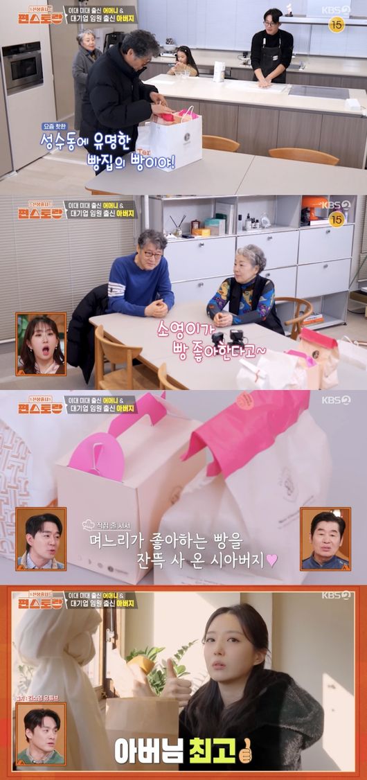 이때 오상진 부모님이 집을 방문했다. 이대 출신 어머니와 H중공업 임원 출신인 아버지는 양손 가득 들고 왔고 “성수동에 유명한 빵이다”라고 말했다.
