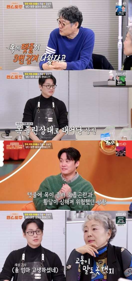그런가 하면, 부모님은 오상진의 태어났던 순간을 떠올렸다. 난산으로 태어났다는 오상진은 지금 살아 있는 게 천운일 정도라고. 오상진 아버지는 “너는 지금 살아 있는 게 천운이지. 의사가 너 태어난 게 천만다행이라고 천운이라고 그랬다. 목에 탯줄이 3번 감았다”라고 고백해 놀라움을 안겼다.