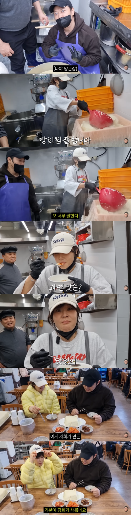두 사람이 정성껏 만든 두부가 완성되자 주인은 “이러면 두부가 잘 나온 거야”라며 합격점을 주었고, 두 사람은 기분 좋은 목소리로 성공의 기쁨을 나눠 눈길을 끌었다.