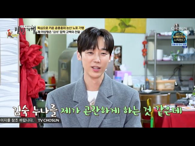 서예가 취미이며 요리를 해서 직접 서예 교실 사람들에게 대접하는 것도 유명한 윤종훈. 그의 이상형은 어떻게 될까? 윤종훈은 “김숙 누나를 자꾸 곤란한게 하는 것 같은데, 개그우먼 김숙 누나다”라면서 “어느 프로그램에서 김숙이 ‘어디 남자가 조신하지 못하게 밖에서 돈을 버냐. 조신하게 집에 있어라’라고 하는데 그게 정말 진취적이고, 저에게 강력하게 다가오더라”라고 말했다.