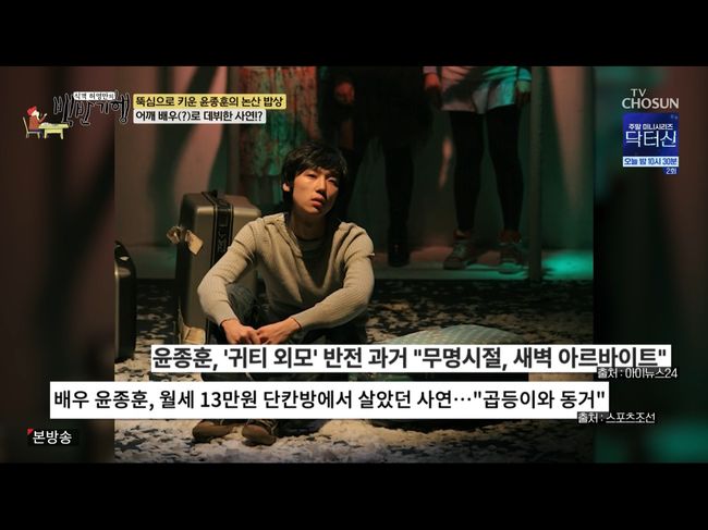 올해 43살의 윤종훈은 데뷔 20년 차로, 무명 생활이 꽤 길었다. 짜장면을 먹으면서 무명 시절의 이야기를 하던 중 윤종훈은 “전 운이 좋아서 거의 다 됐던 거 같다. 한 80% 된 거 같다. 가끔 오디션장에 7~8명이 함께 들어갈 때가 있다. 그때 막 눈을 치켜뜨면서 욕을 하면 다들 놀랐다”라며 오히려 자신은 괜찮았다고 말했다.