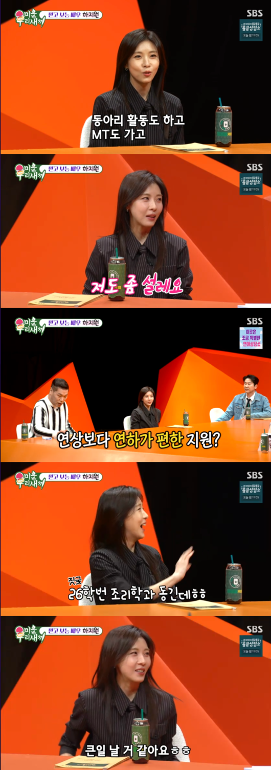 '미운 우리 새끼’ 배우 하지원이 26학번 새내기로 변신한 근황과 함께 반전 넘치는 일상을 공개했다.