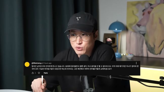 그러면서 "일단 그렇게 되고 나니까 정말 빨리 익혔다. 애들이 다 그렇듯이. 아이들은 언어를 정말 엄청 빨리 익힌다. 그래서 이중언어 사용자가 되길 원하신다면 그냥 역할을 나눠서 아이와 그 언어로 대화해 달라. 그러면 아이도 자연스럽게 익힐거다. 걱정하지 마라"고 응원했다.