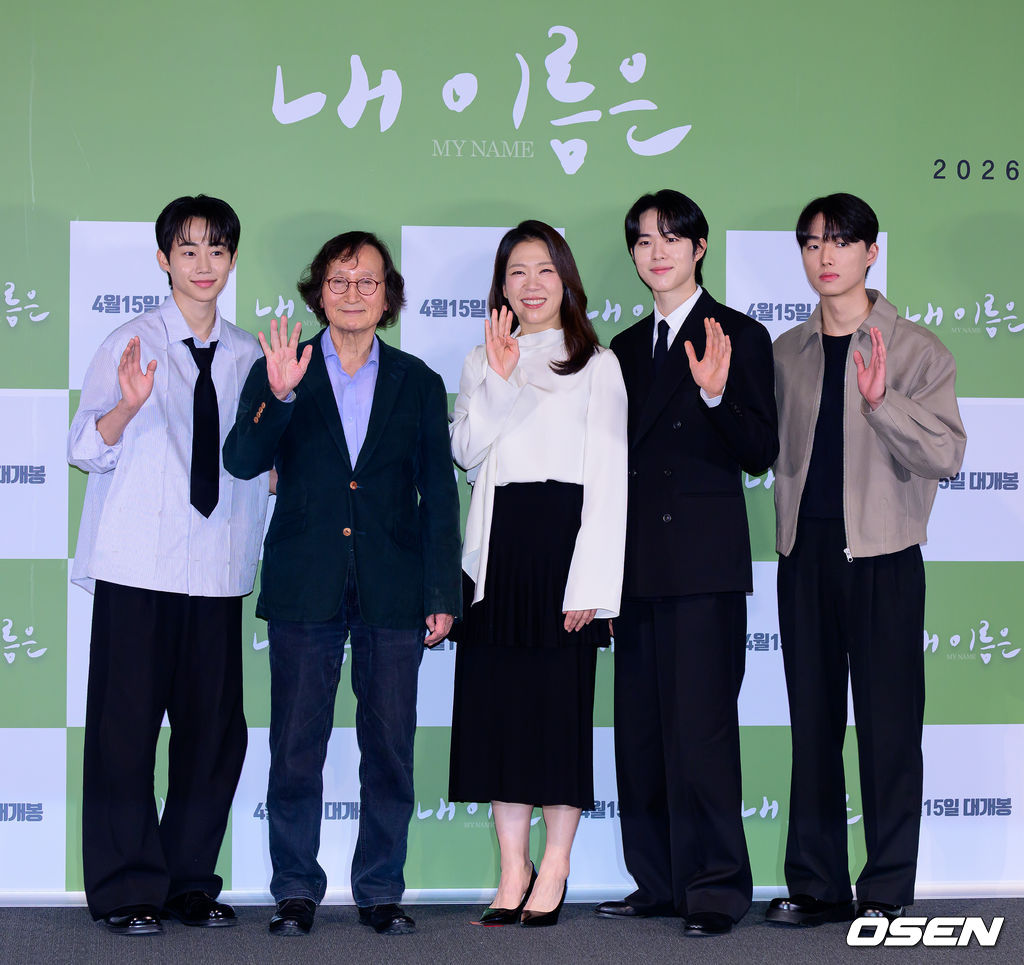 정지영 감독을 비롯한 배우 박지빈, 염혜란, 신우빈, 최준우가 포토타임을 하고 있다. 2026.04.02 / jpnews@osen.co.kr