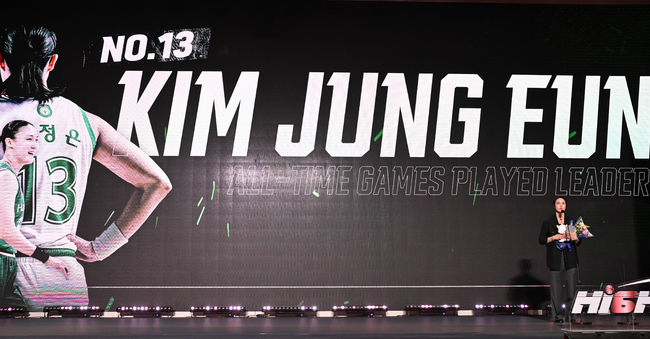 두 번째 특별상을 받은 김정은은 "이런 상을 두 번이나 받은 것 자체가 영광이다. 내가 농구 인생 마지막에 오니 감사한 분들이 많다. 아직 시간이 있으니 모두에게 인사를 전하겠다. 은퇴 투어를 하다보니 나에게 인연이 없던 팀이 없더라. 농구 판에 영원한 적도 아군도 없었다. 각 구단 사무국, 연맹에 감사함을 전한다"라고 입을 열었다.