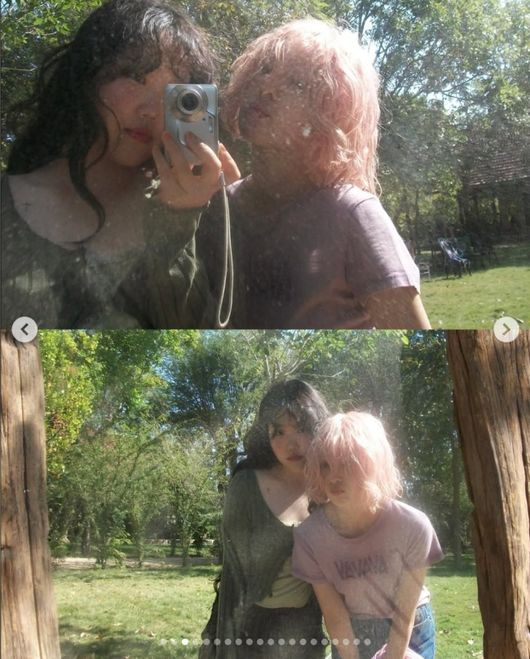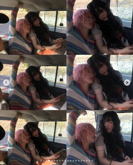 또 다른 사진에는 악뮤 멤버이자 김보라의 절친한 친구인 이수현의 모습도 담겨 있었다. 두 사람은 다정하게 서로에게 기대어 포즈를 취했다.