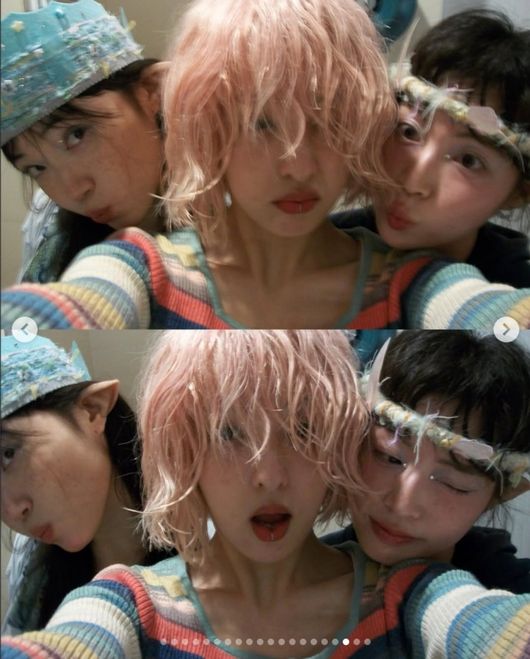 특히 사진 속에는 악뮤 이찬혁과 열애설이 제기됐던 배우 하지수의 모습도 담겨 있었 눈길을 끌었다. 김보라에게 입술을 내밀고 ‘뽀뽀’ 포즈를 취하며 각졀한 친분을 드러내기도 했다.
