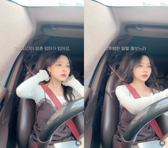 공개된 사진에는 이솔이가 운전하는 모습이 담겨 있었다. 의자에 등을 기댄 이솔이는 다소 지치기도 한 표정이었다. 앞을 주시하며 운전에 집중하면서도 여러 가지 생각이 담긴 얼굴이기도 했다.