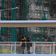 2025.11.28 18: 12홍콩 아파트 화재 현장 지나는 시민들