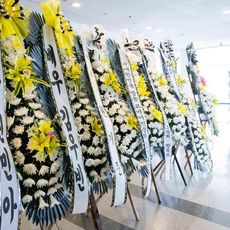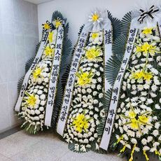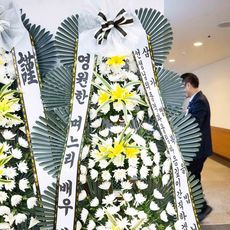 2025.11.25 16: 01故 이순재 빈소에 놓여진 이재명 대통령 근조화환