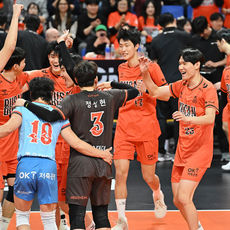 2025.11.27 20: 28득점 성공 기쁨 나누는 OK저축은행 선수들