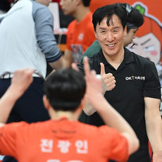 OK저축은행 신영철 감독, 전광인 향해 300승 엄지척