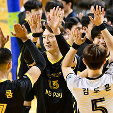 2025.11.29 17: 07KB손해보험, 현대캐피탈 상대 짜릿한 3-2 승리