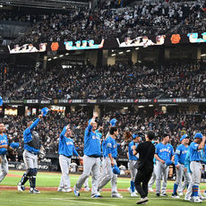 2025.11.30 17: 54마운드에서 기념사진 찍는 투수조