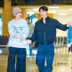 2025.12.02 08: 26에이티즈 홍중-산-성화,'출국길에 화기애애'