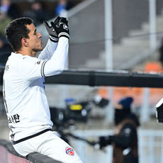 2025.12.03 20: 38제주 유리 조나탄, '페널티킥 선제골에 손키스 날리며'