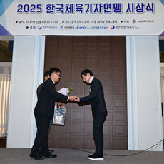 2025.12.08 16: 01'2025 한국체육기자연맹 시상식'에서 올해의 지도자상 받는 염경엽