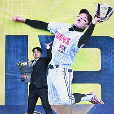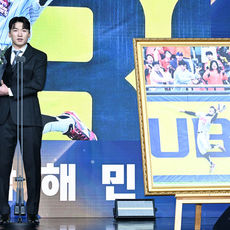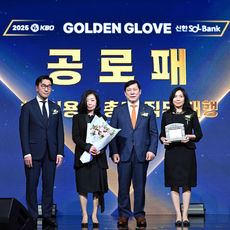 '박해민 슈퍼캐치' 골든포토상 시상하는 지형준 회장
