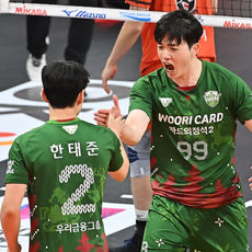 2025.12.17 20: 11득점 성공 환호하는 아라우조와 박진우