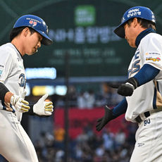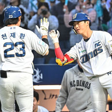 2026.04.29 19: 34천재환, 최정원과 솔로 홈런 하이파이브
